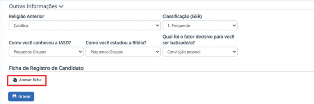 Este nome não aparecerá imediatamente na lista de membros de sua igreja, pois a Associação/Missão precisa Aprovar a Admissão”, o que será feito após a ficha ser digitada e anexada pela secretária local. Caso tenha dificuldade ao anexar as fichas. busque ajuda da secretaria da Associação/Missão.