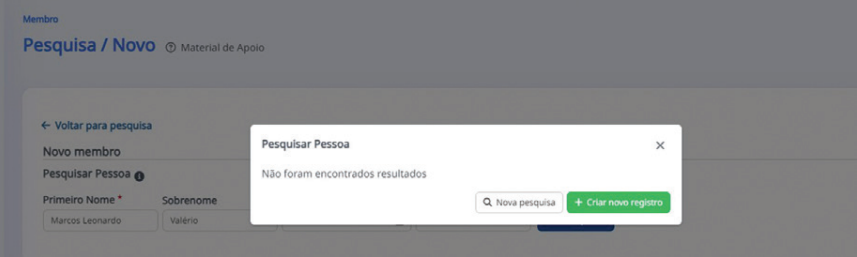 Membro encontrado e Ativo – Neste caso, esta pessoa já é membro da igreja, e não deve ser cadastrado novamente. O que pode ter acontecido: