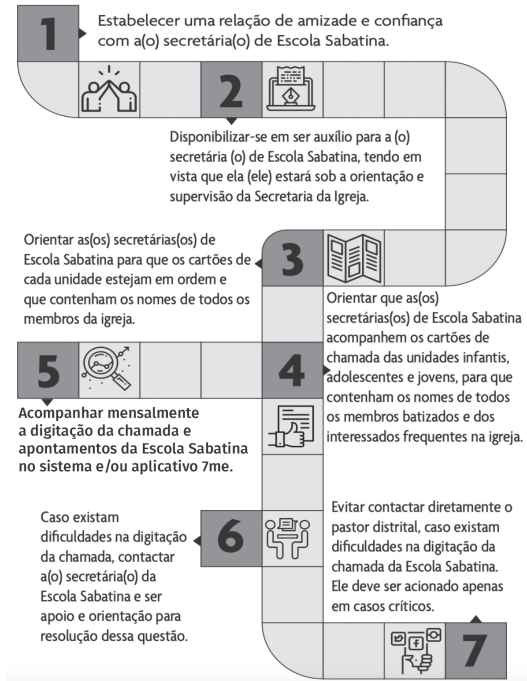 Sugerimos acordar previamente como será realizado o processo com o seu pastor e o primeiro ancião da igreja, e levar cópias impressas do último relatório para todos os membros da comissão. Este é um dos momentos mais importantes e produtivos em uma comissão diretiva.